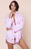 Cut Out Embroidery Beach Shirt in Petal Pink