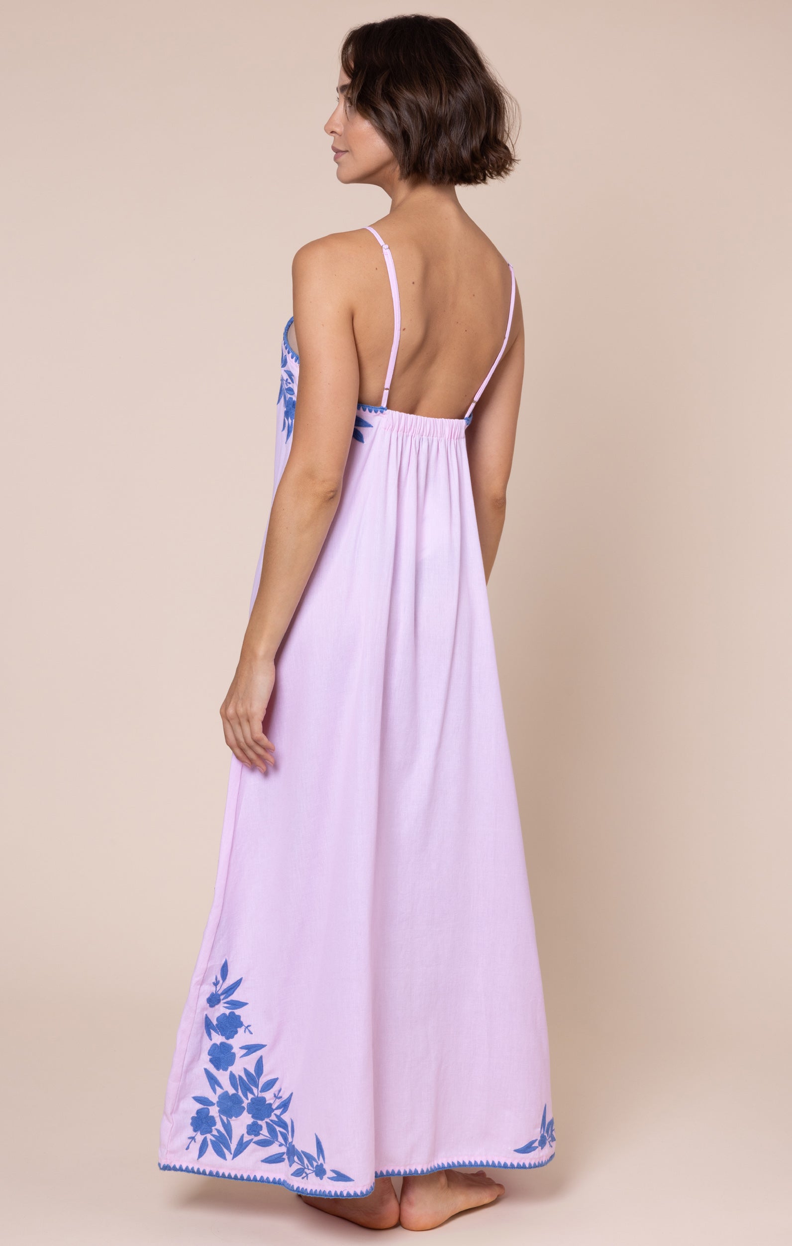 Meet your new go-to dress—a pink maxi dress that's as fun as it is fabulous. The square neckline frames your figure before dropping down to a simple sheath shape. Lightweight and flowing, it's the perfect companion for everything from garden parties to casual weekends.
