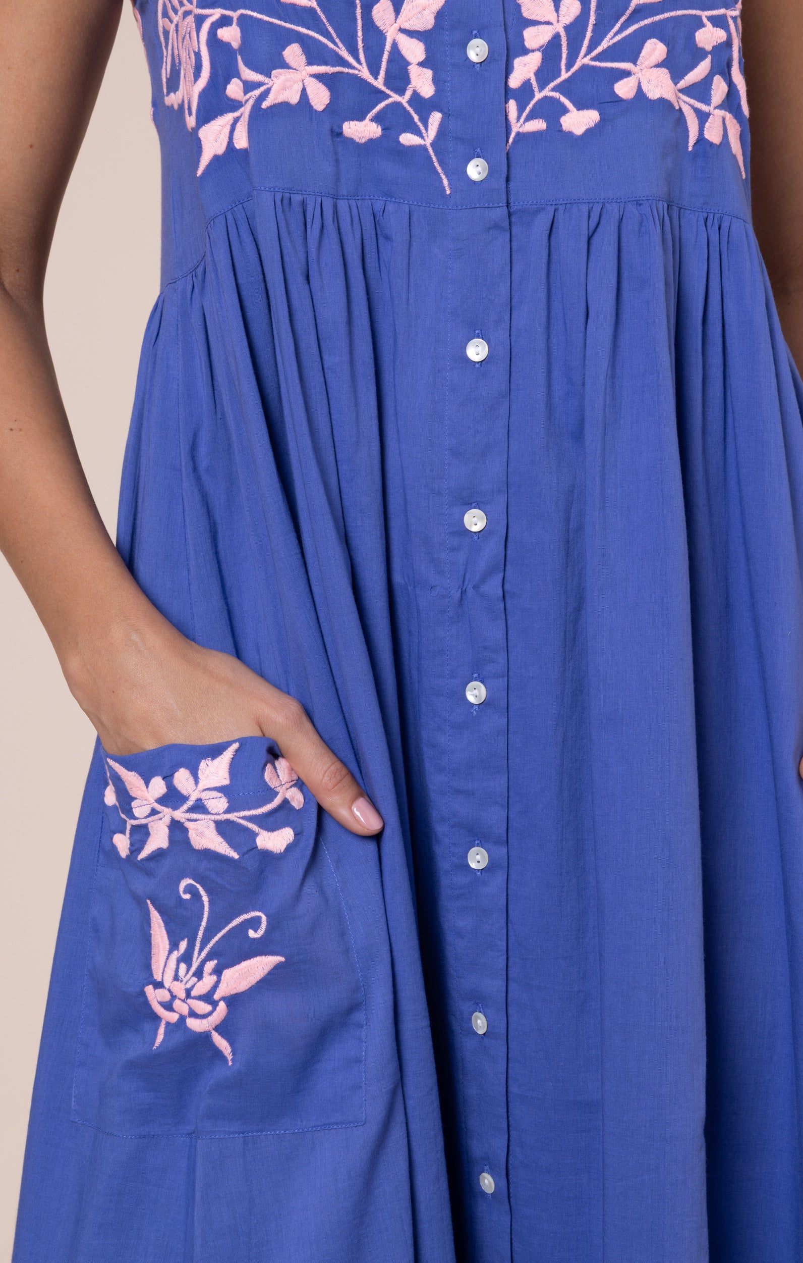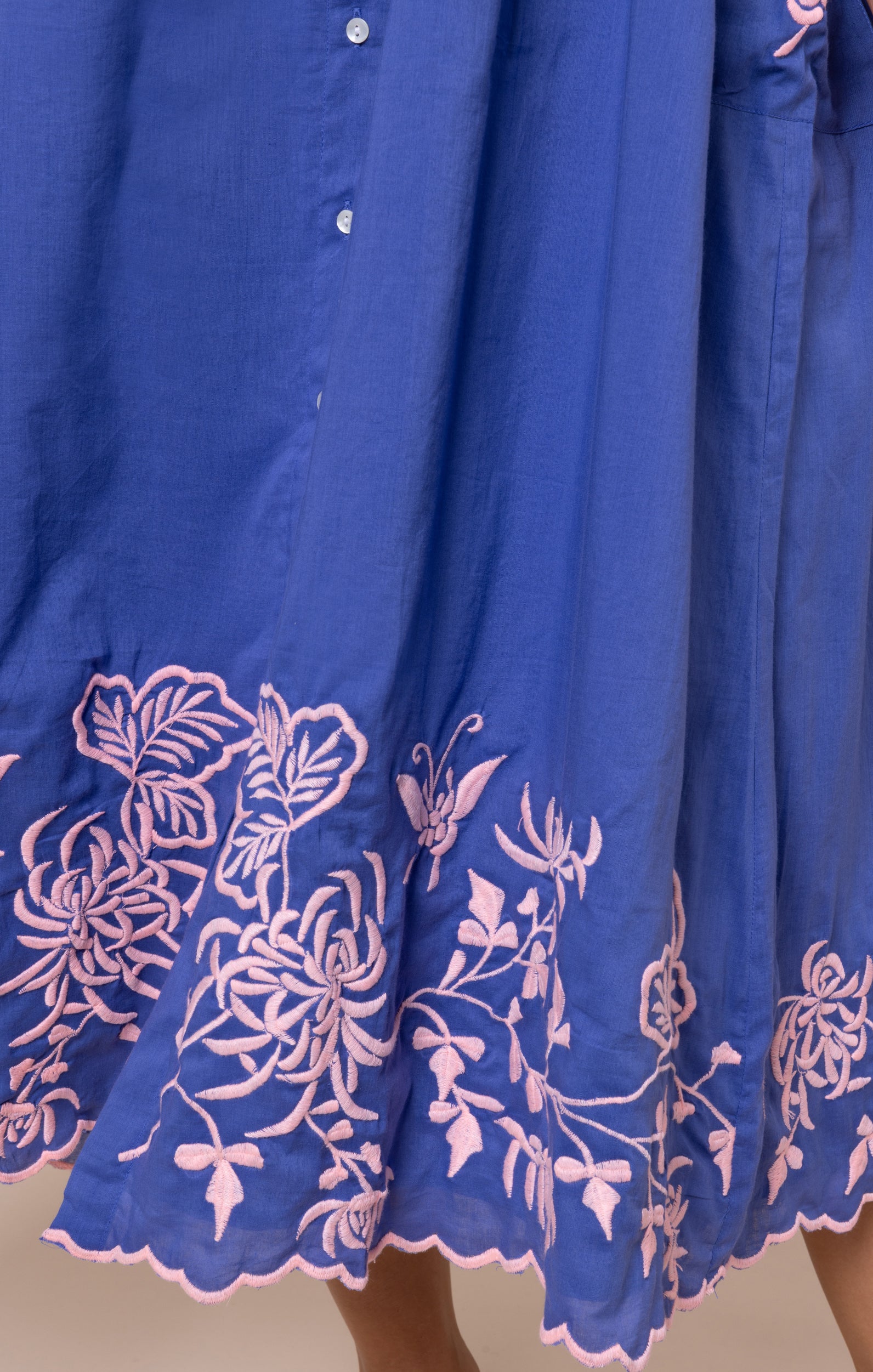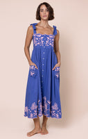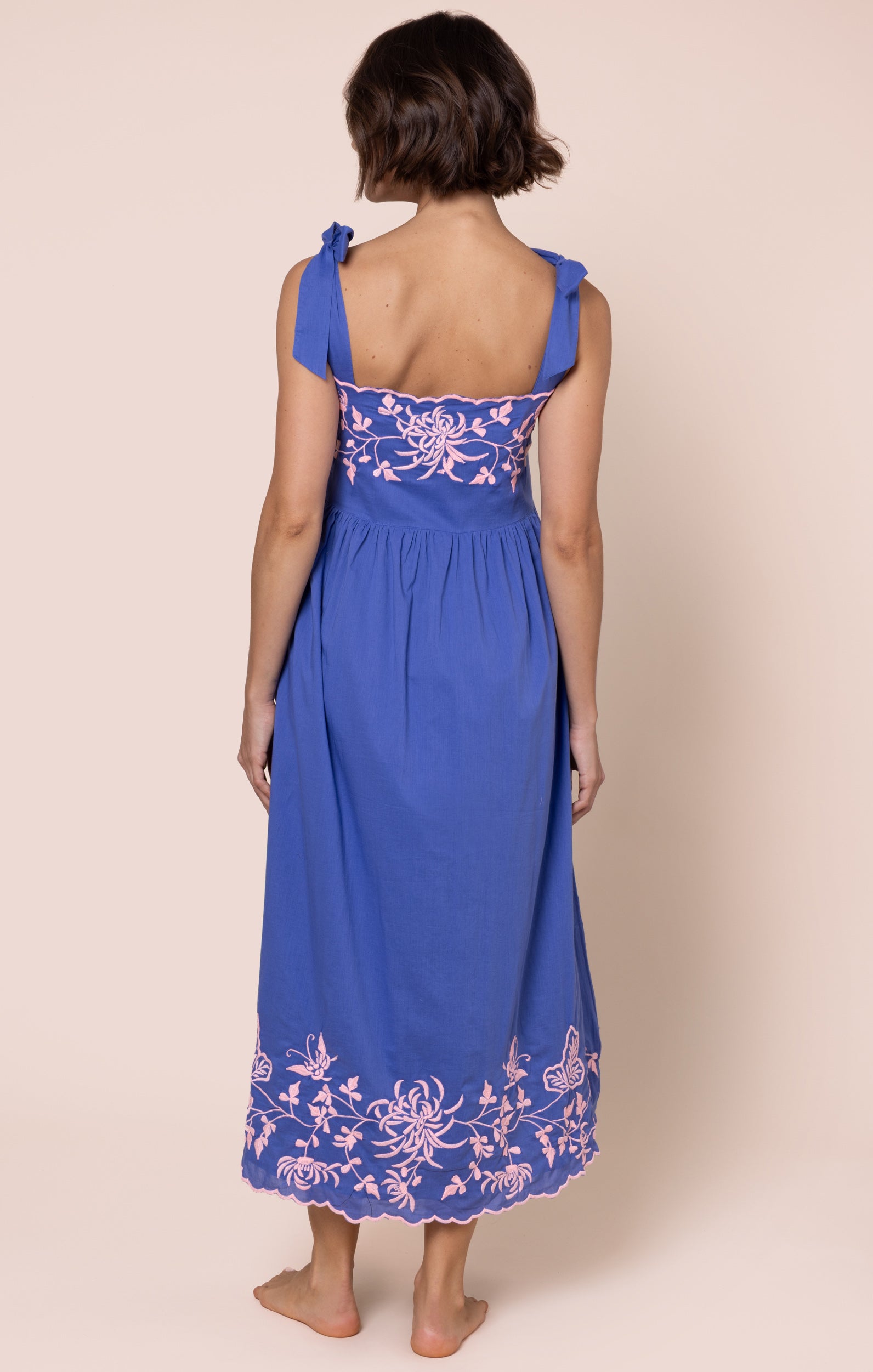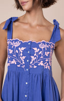 Denim Blue Tie Shoulder Dress with Butterfly Embroidery