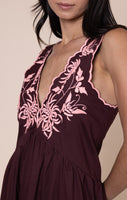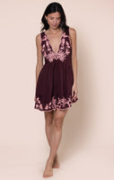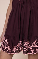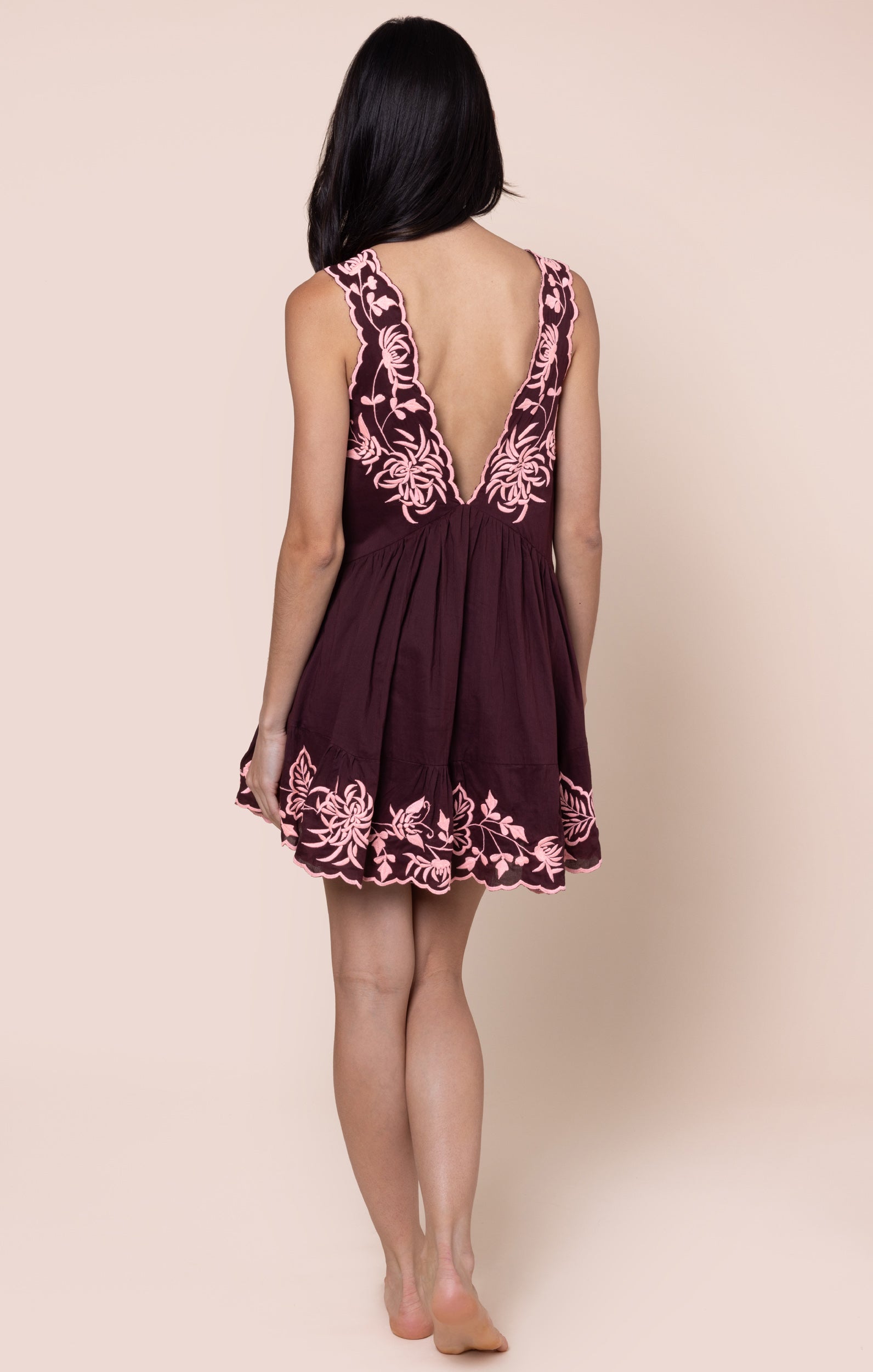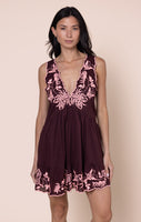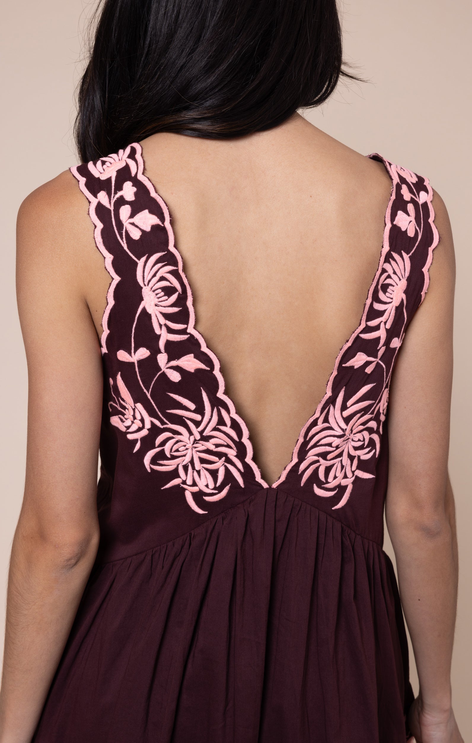 V-Back Mini Dress in Black Cherry with Butterfly Embroidery