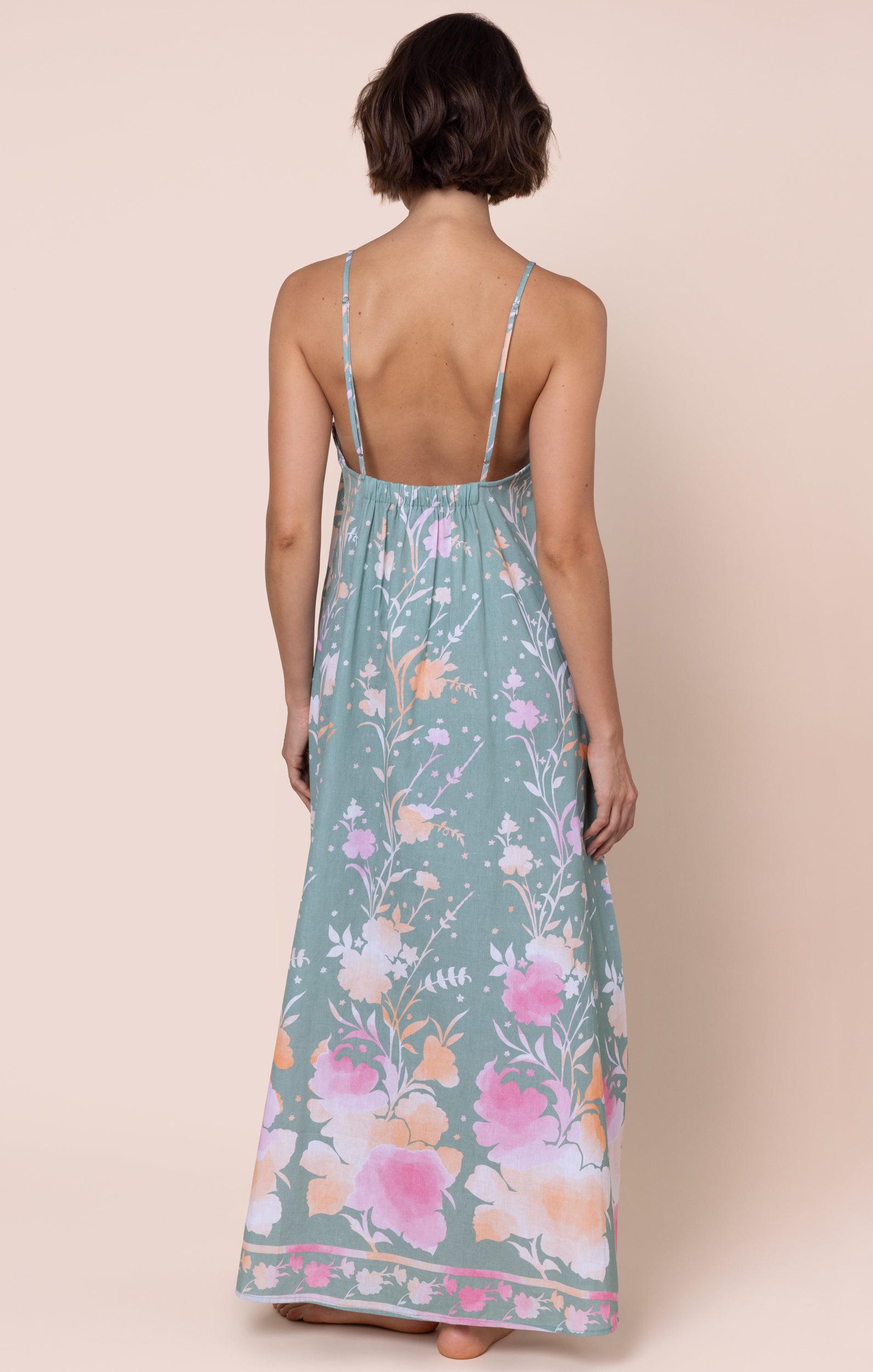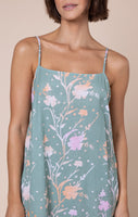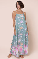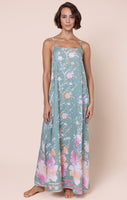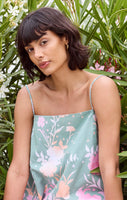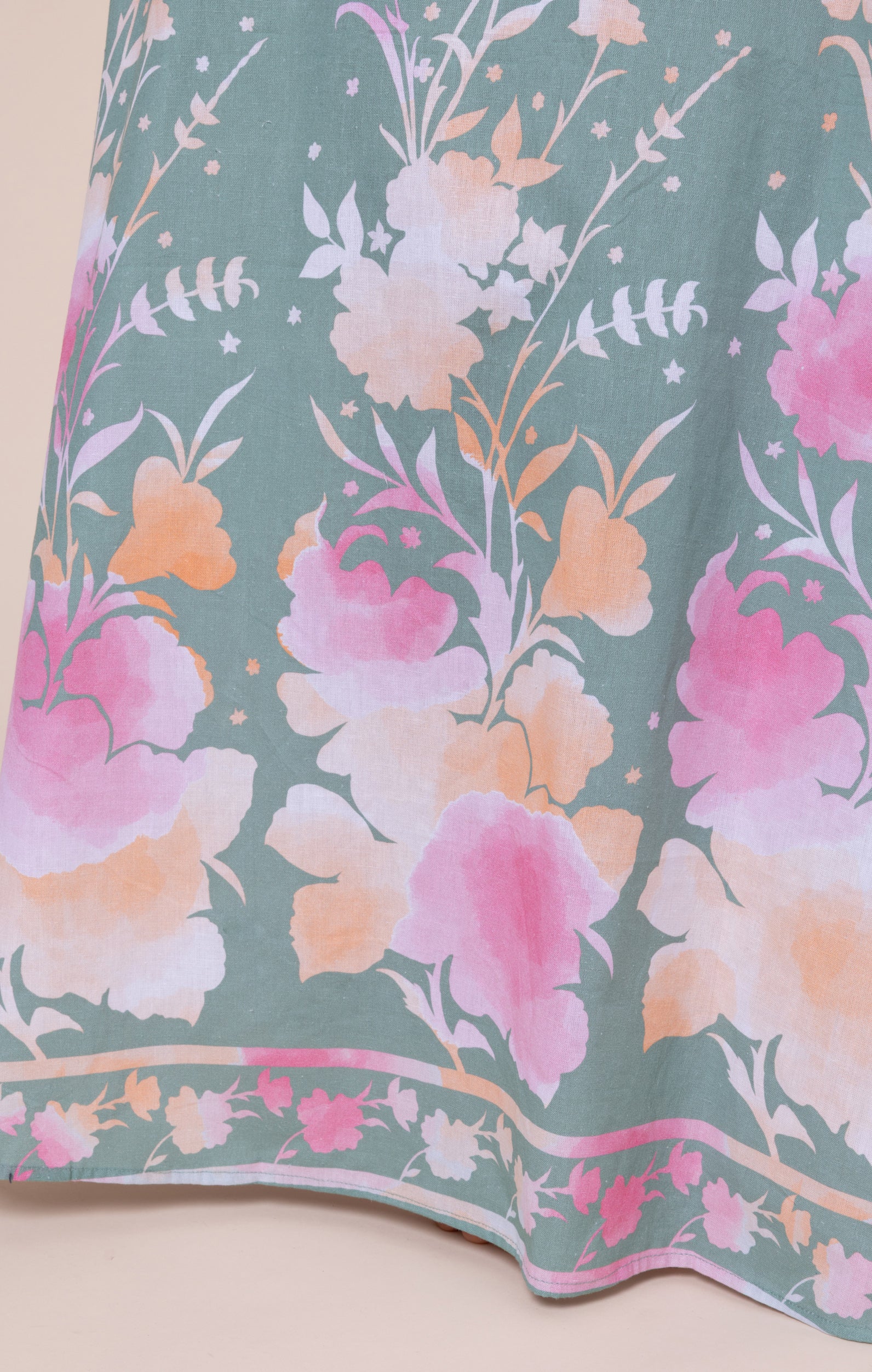 Square Neck Maxi Dress in Cactus Green Oversized Floral Print