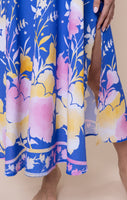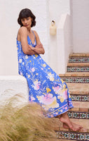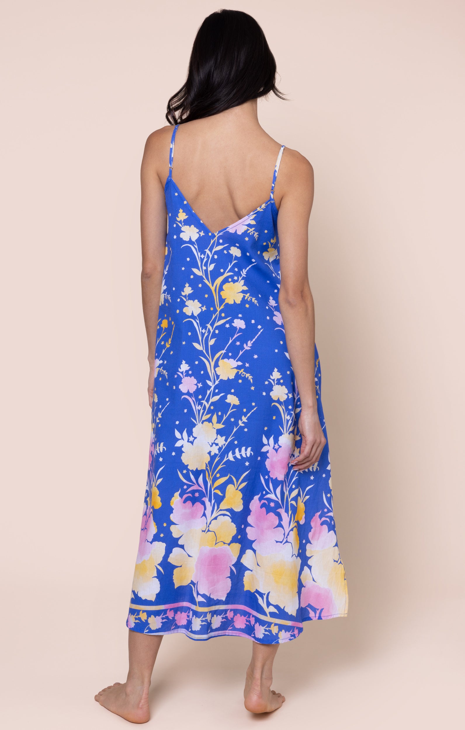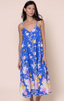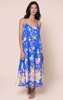Effortlessly chic and wonderfully breezy, this electric blue slip dress is your new summer essential. The oversized floral print brings personality with an understated ease. Designed with a loose, flowing silhouette that moves beautifully with you, adjustable spaghetti straps ensure the perfect fit.
