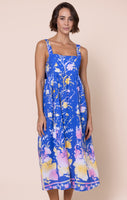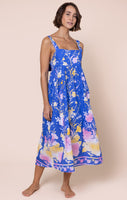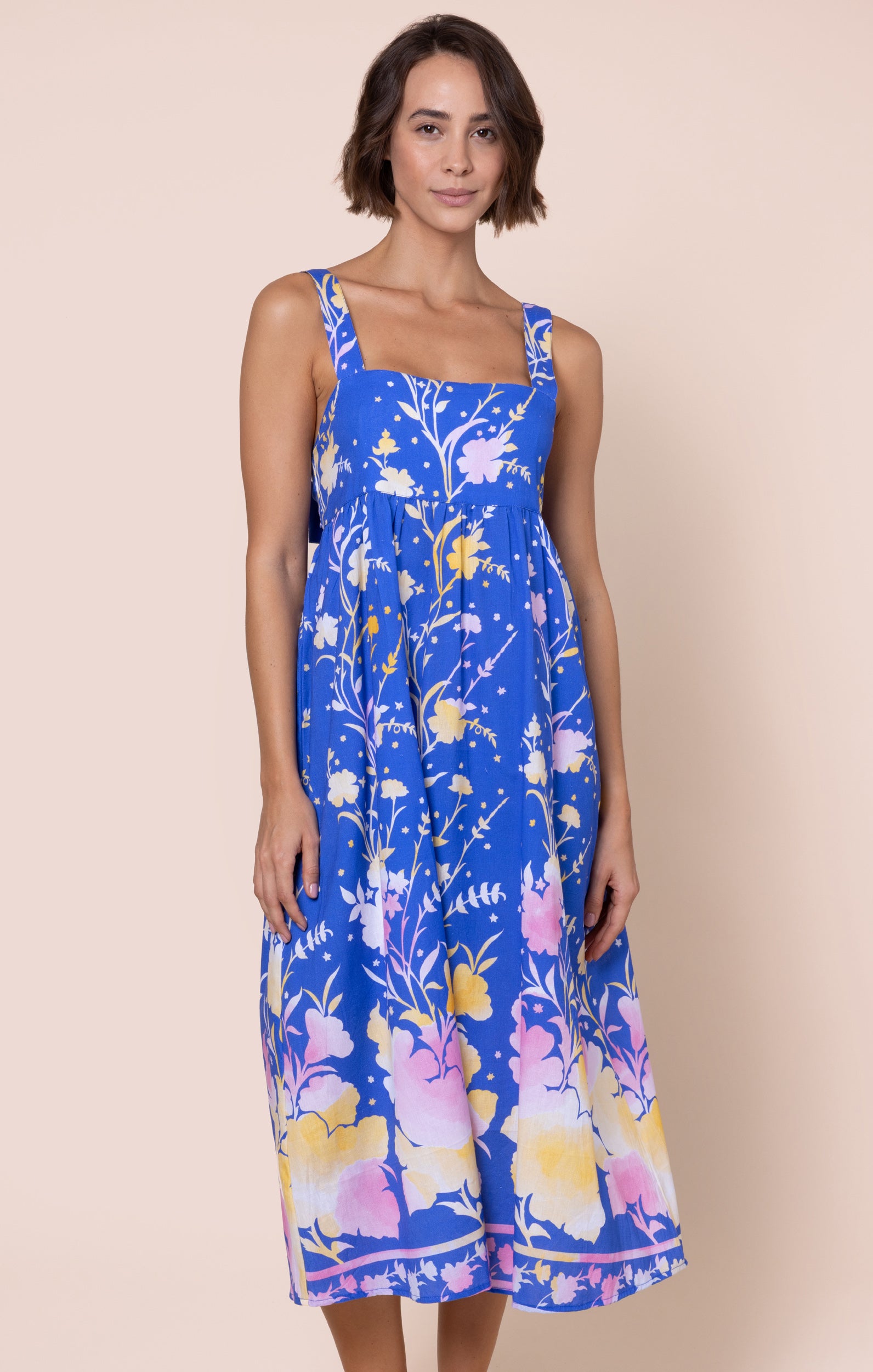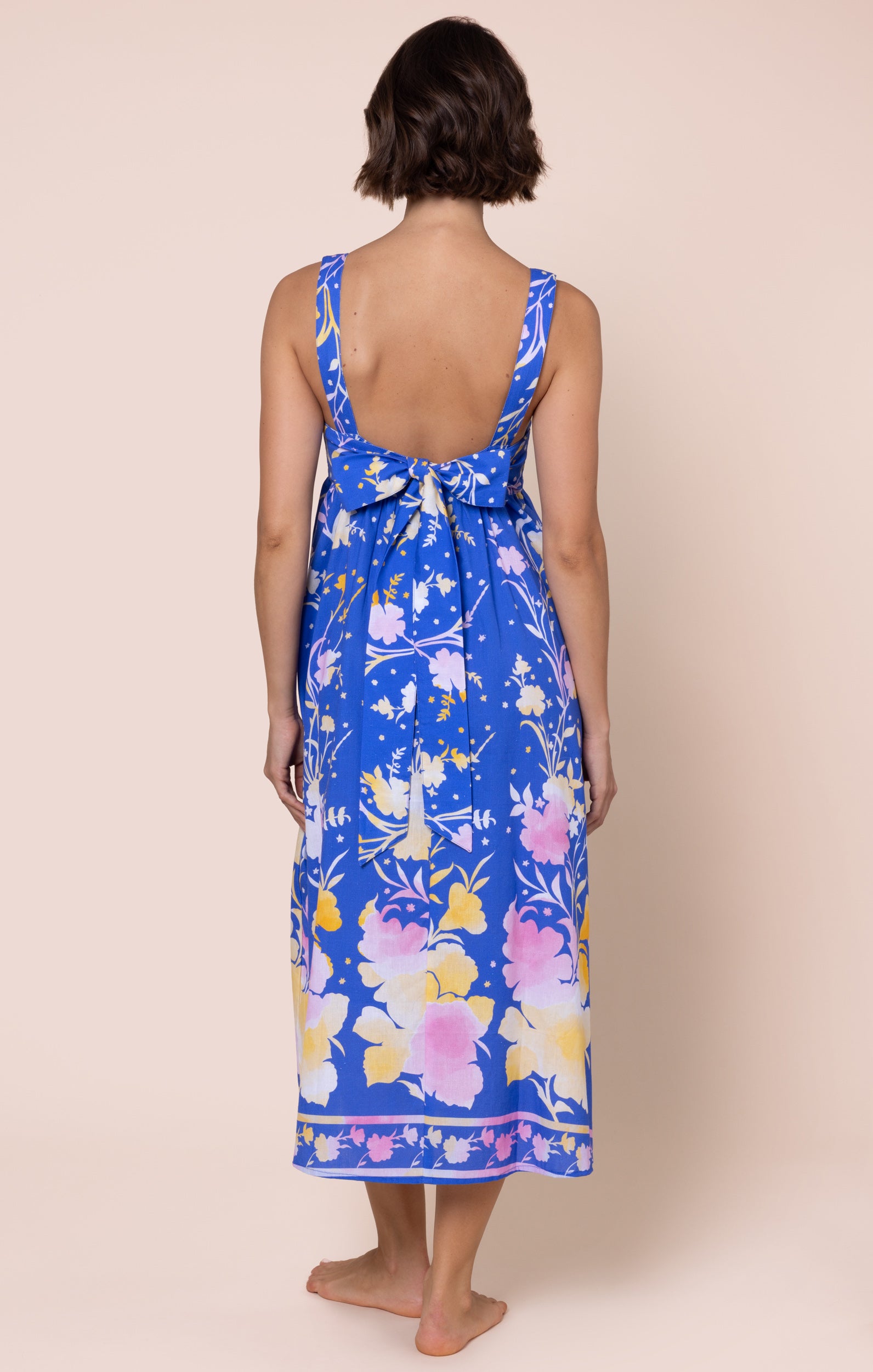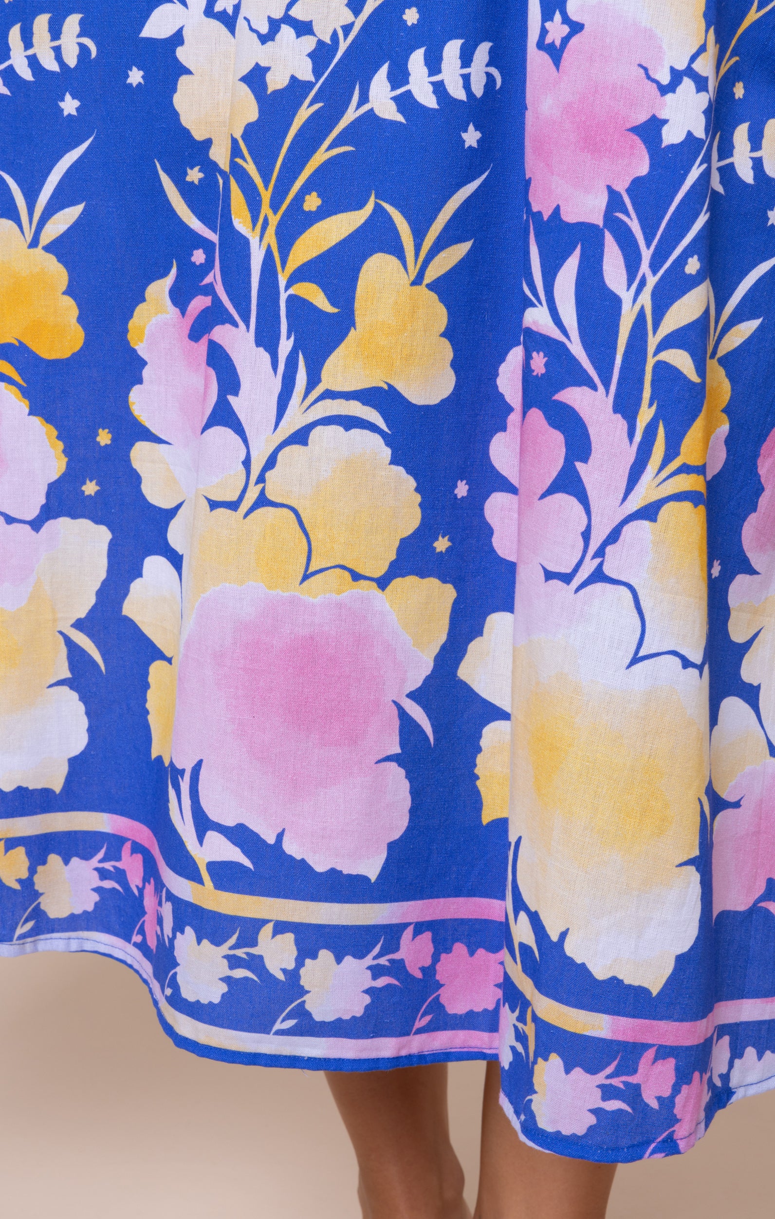 Electric Blue Tie Back Dress in Oversized Floral Print