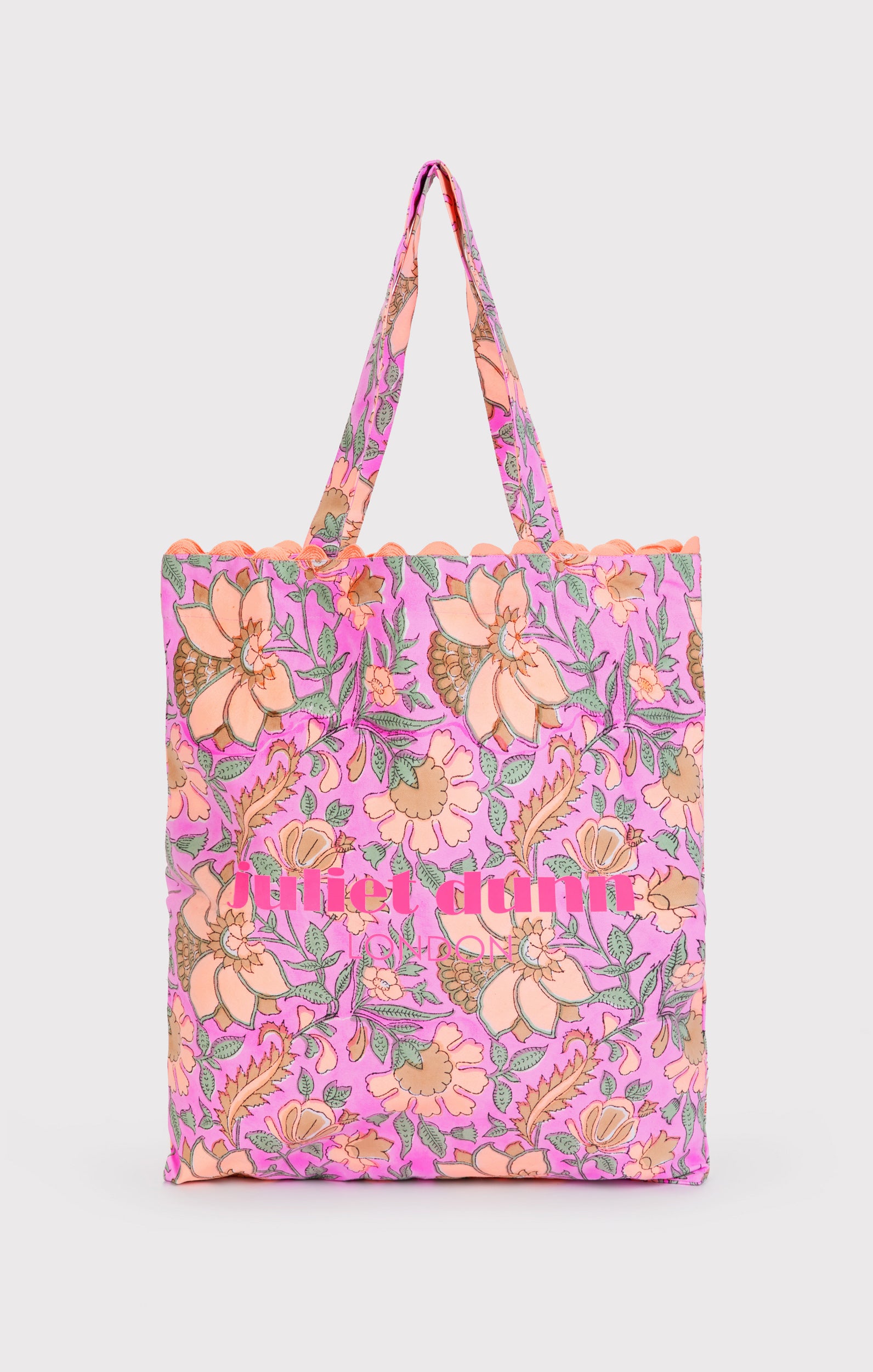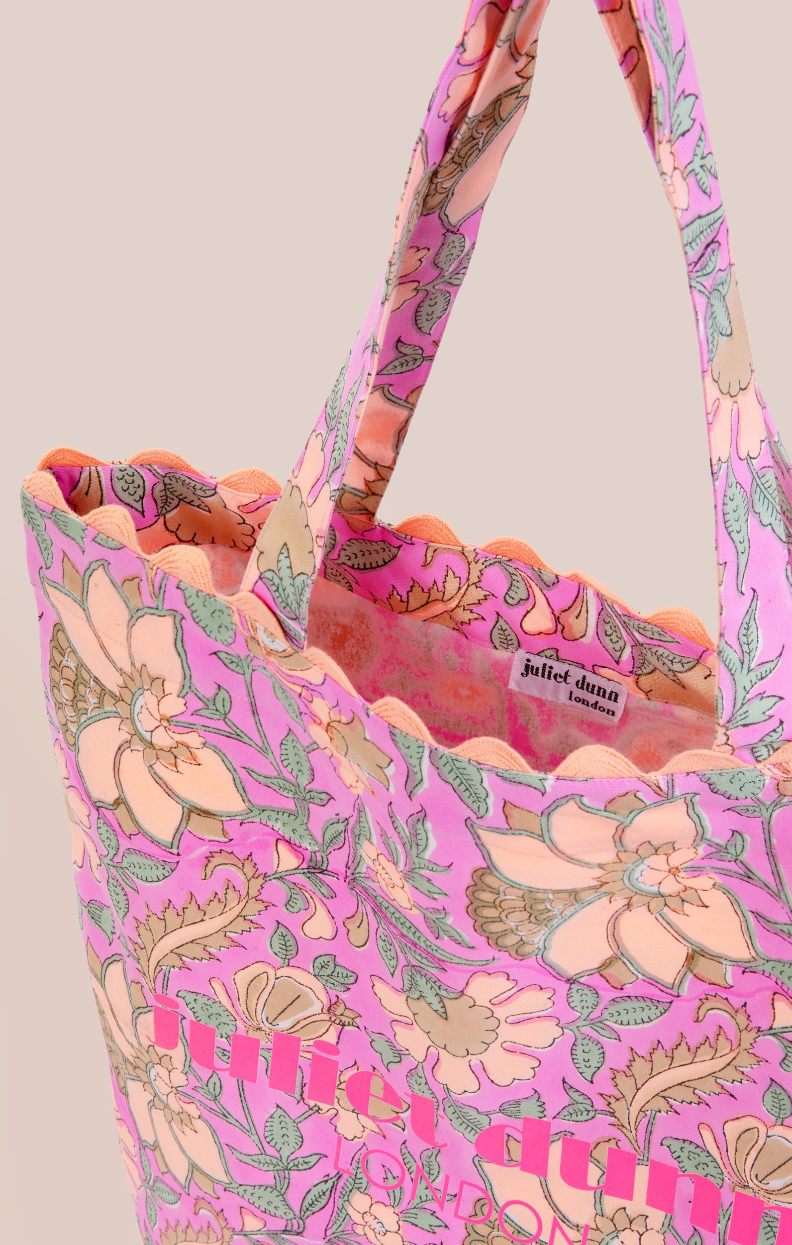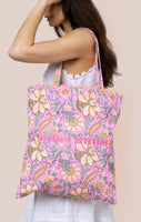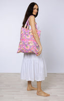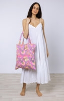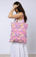 This tote bag, featuring a vibrant orchid block print, is perfect for all your needs (and a few of your wants too)! Whether you're headed to the beach, the grocery store, or just out and about, this bag has got you covered. With its spacious interior and durable construction, this tote will become your new go-to for all your daily adventures.