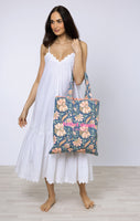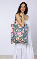 This tote bag, featuring a floral block print, is perfect for all your needs (and a few of your wants too)! Whether you're headed to the beach, the grocery store, or just out and about, this bag has got you covered. With its spacious interior and durable construction, this tote will become your new go-to for all your daily adventures.